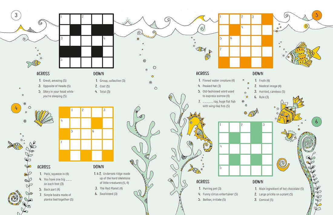 Kids can put their general knowledge and word power to the test with this handy paperback, containing over 100 crosswords with full-color illustrations. The puzzles start simple and gradually get harder throughout the book, testing kids' knowledge as their crossword skills improve. All the answers are listed at the back.
